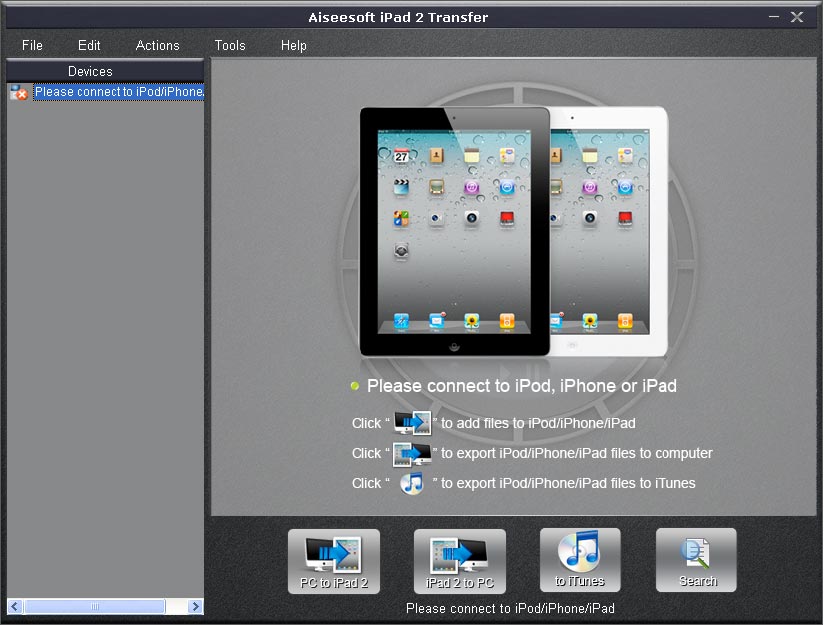 Besides of iPad 2, this iPad 2 Transfer also supports iPod, iPhone, and original version of iPad.